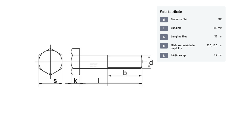 93110180109B Șurub cap hexagonal filet parțial DIN931 M10x1,5x180mm filet 32mm oțel grupa 10.9