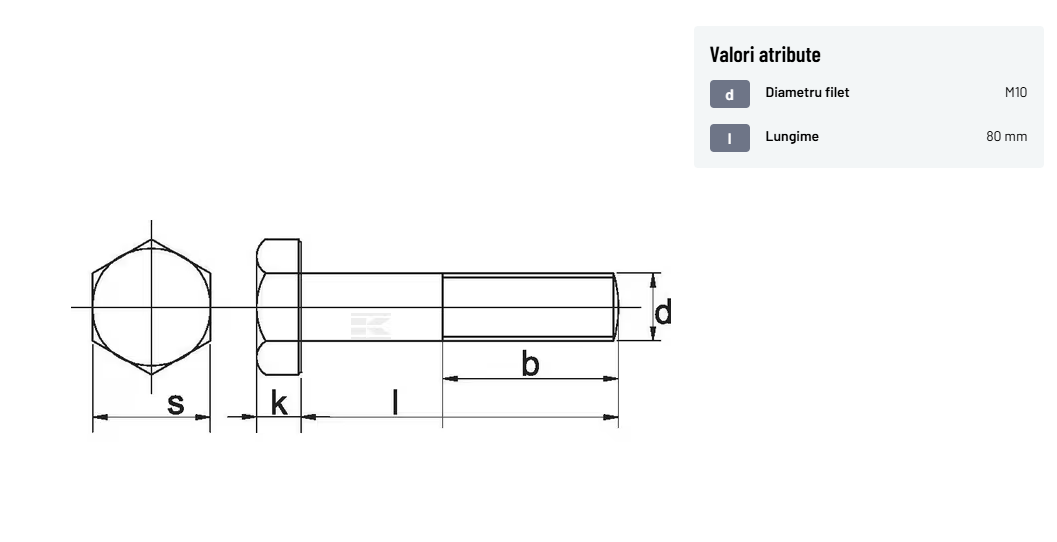| Descriere detaliată | Șurub cu cap hexagonal, filet parțial, lungimea este măsurată de sub cap. ISO 4014 înlocuiește DIN 931: conform ISO, dimensiune cheilor 16, 18, 21 și 34 sunt acum pentru M10, M12, M14 și, respectiv, M22. | |