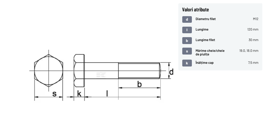 | Descriere detaliată | Șurub cu cap hexagonal, filet parțial, lungimea este măsurată de sub cap. ISO 4014 înlocuiește DIN 931: conform ISO, dimensiune cheilor 16, 18, 21 și 34 sunt acum pentru M10, M12, M14 și, respectiv, M22. | |