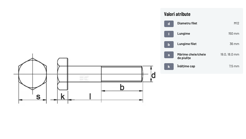 | Descriere detaliată | Șurub cu cap hexagonal, filet parțial, lungimea este măsurată de sub cap. ISO 4014 înlocuiește DIN 931: conform ISO, dimensiune cheilor 16, 18, 21 și 34 sunt acum pentru M10, M12, M14 și, respectiv, M22. | |