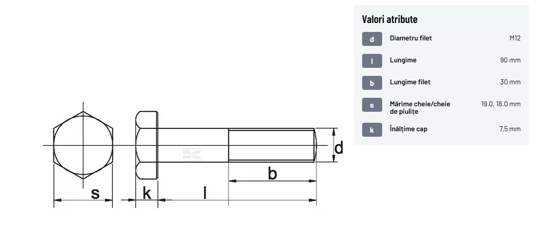 | Descriere detaliată | Șurub cu cap hexagonal, filet parțial, lungimea este măsurată de sub cap. ISO 4014 înlocuiește DIN 931: conform ISO, dimensiune cheilor 16, 18, 21 și 34 sunt acum pentru M10, M12, M14 și, respectiv, M22. | |
