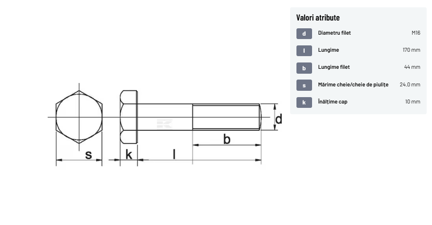 | Descriere detaliată | Șurub cu cap hexagonal, filet parțial, lungimea este măsurată de sub cap. ISO 4014 înlocuiește DIN 931: conform ISO, dimensiune cheilor 16, 18, 21 și 34 sunt acum pentru M10, M12, M14 și, respectiv, M22. | |