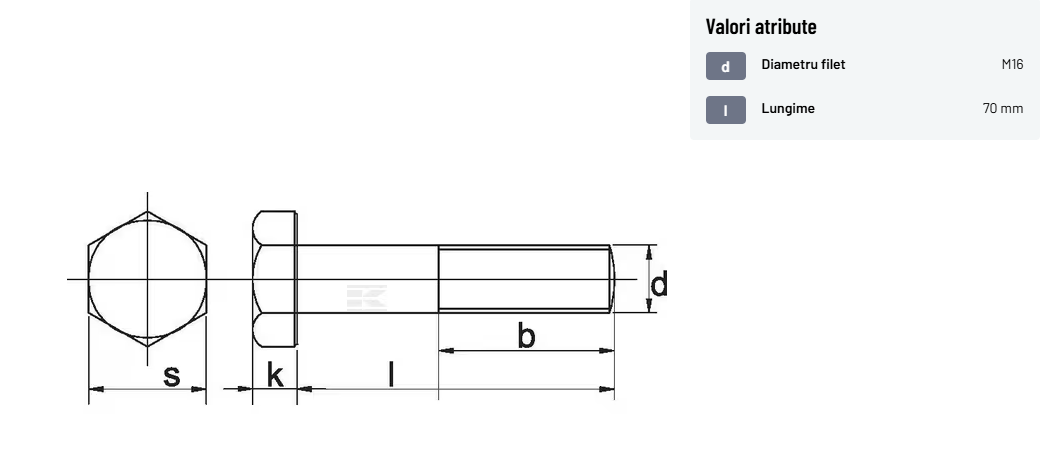 | Descriere detaliată | Șurub cu cap hexagonal, filet parțial, lungimea este măsurată de sub cap. ISO 4014 înlocuiește DIN 931: conform ISO, dimensiune cheilor 16, 18, 21 și 34 sunt acum pentru M10, M12, M14 și, respectiv, M22. | |