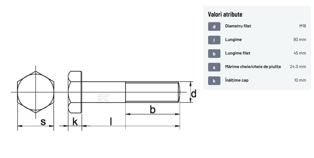 | Descriere detaliată | Șurub cu cap hexagonal, filet parțial, lungimea este măsurată de sub cap. ISO 4014 înlocuiește DIN 931: conform ISO, dimensiune cheilor 16, 18, 21 și 34 sunt acum pentru M10, M12, M14 și, respectiv, M22. | |