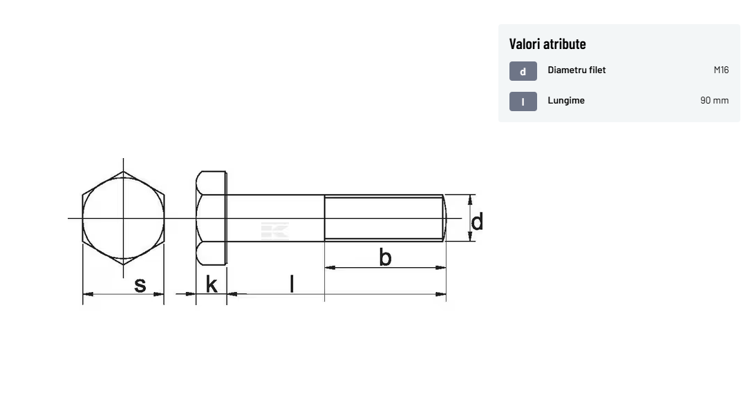 | Descriere detaliată | Șurub cu cap hexagonal, filet parțial, lungimea este măsurată de sub cap. ISO 4014 înlocuiește DIN 931: conform ISO, dimensiune cheilor 16, 18, 21 și 34 sunt acum pentru M10, M12, M14 și, respectiv, M22. | |