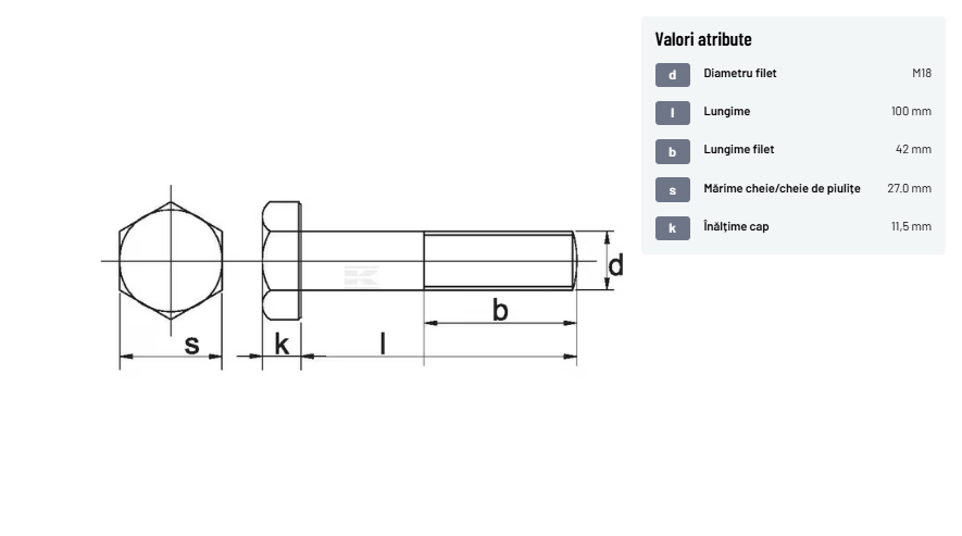 | Descriere detaliată | Șurub cu cap hexagonal, filet parțial, lungimea este măsurată de sub cap. ISO 4014 înlocuiește DIN 931: conform ISO, dimensiune cheilor 16, 18, 21 și 34 sunt acum pentru M10, M12, M14 și, respectiv, M22. | |
