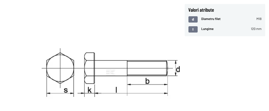 | Descriere detaliată | Șurub cu cap hexagonal, filet parțial, lungimea este măsurată de sub cap. ISO 4014 înlocuiește DIN 931: conform ISO, dimensiune cheilor 16, 18, 21 și 34 sunt acum pentru M10, M12, M14 și, respectiv, M22. | |