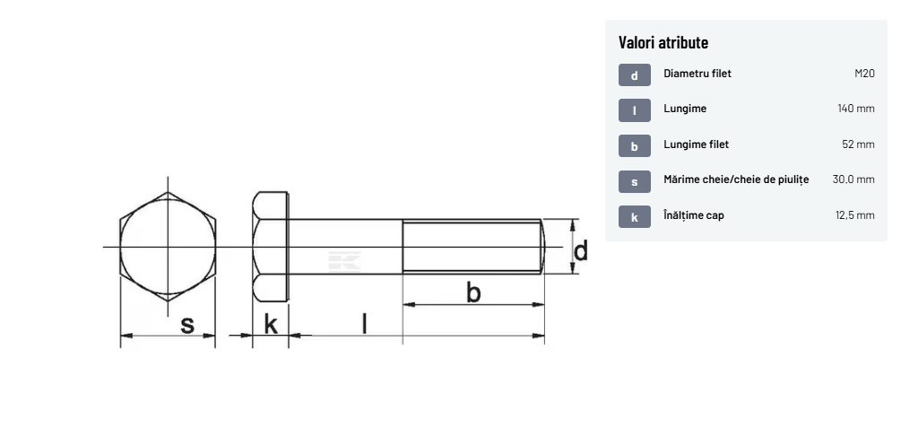 | Descriere detaliată | Șurub cu cap hexagonal, filet parțial, lungimea este măsurată de sub cap. ISO 4014 înlocuiește DIN 931: conform ISO, dimensiune cheilor 16, 18, 21 și 34 sunt acum pentru M10, M12, M14 și, respectiv, M22. | |