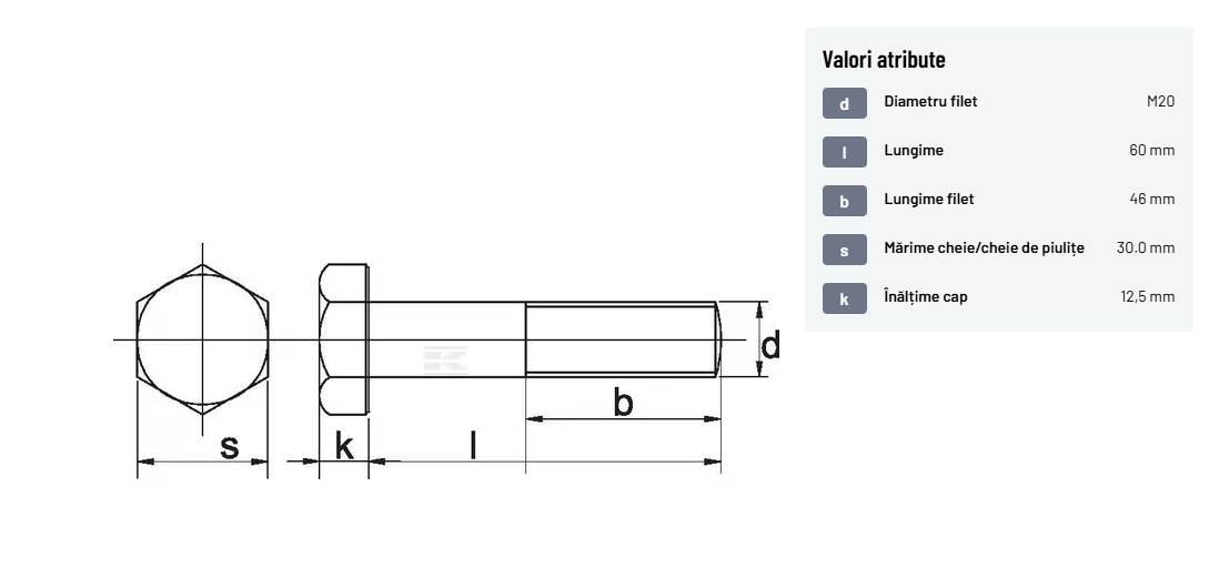 | Descriere detaliată | Șurub cu cap hexagonal, filet parțial, lungimea este măsurată de sub cap. ISO 4014 înlocuiește DIN 931: conform ISO, dimensiune cheilor 16, 18, 21 și 34 sunt acum pentru M10, M12, M14 și, respectiv, M22. | |