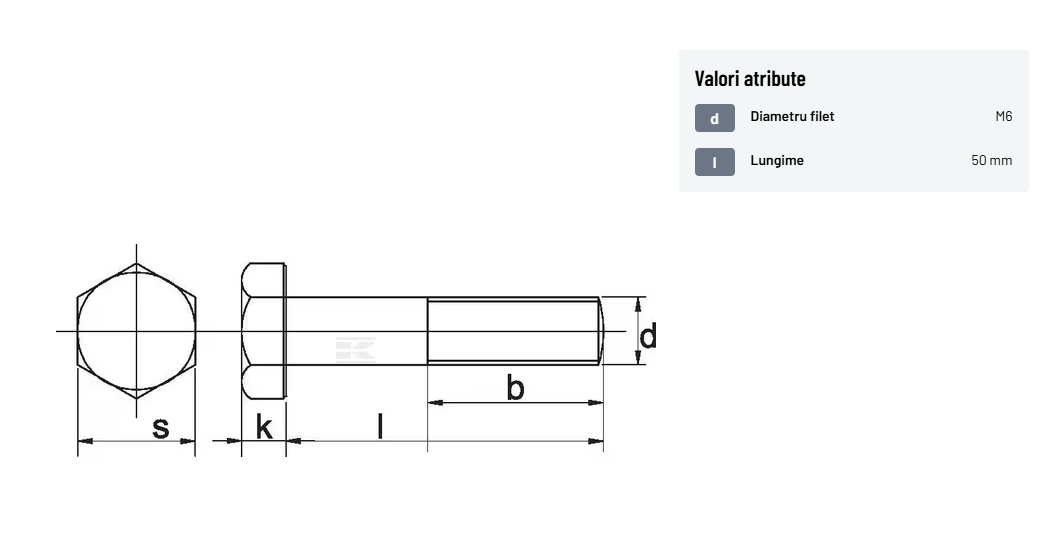 | Descriere detaliată | Șurub cu cap hexagonal, filet parțial, lungimea este măsurată de sub cap. ISO 4014 înlocuiește DIN 931: conform ISO, dimensiune cheilor 16, 18, 21 și 34 sunt acum pentru M10, M12, M14 și, respectiv, M22. | |