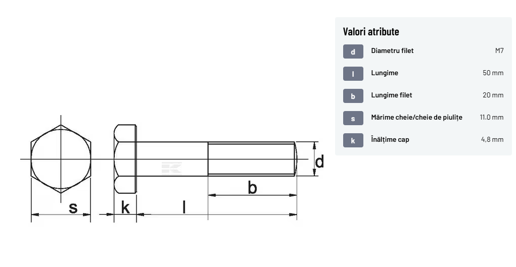| Descriere detaliată | Șurub cu cap hexagonal, filet parțial, lungimea este măsurată de sub cap. ISO 4014 înlocuiește DIN 931: conform ISO, dimensiune cheilor 16, 18, 21 și 34 sunt acum pentru M10, M12, M14 și, respectiv, M22. | |