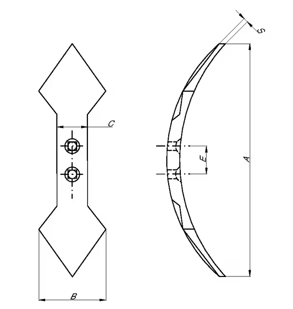 Dimensiuni (mm): raza = 300, grosimea = 20, distanta dintre orificii = 45, 135, lungime = 20 450 450