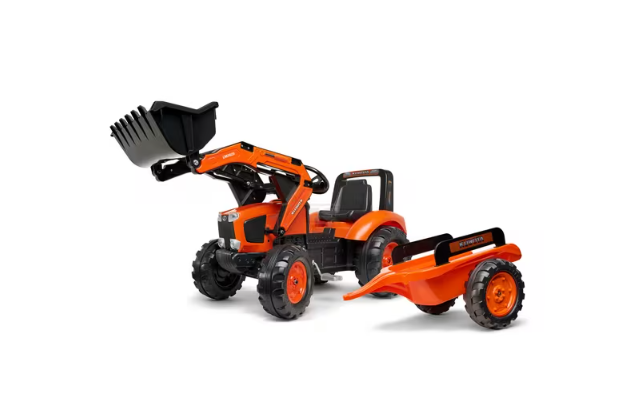 | Descriere detaliată | Buldoexcavator Kubota, replică fidelă a modelului M135GX cu încărcător frontal și remorcă | |
