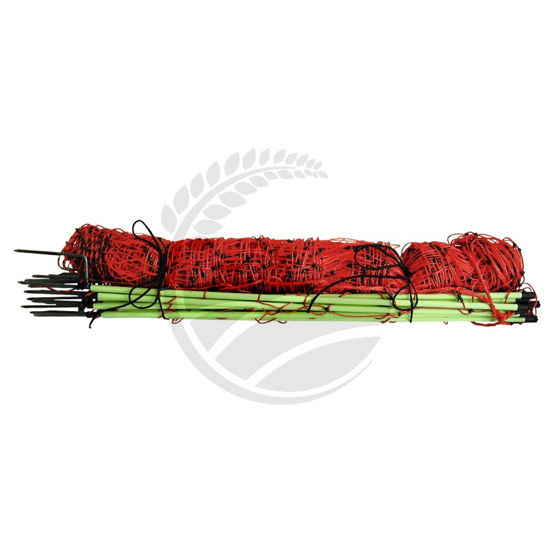 Versiune: Pentru oi, miei, capre, inaltime 90 cm, lungime 50 m, lite din plastic orizontale si sarma din crom nichel. Litele sunt intarite, nu sunt conductoare electrice. 14 stalpi cu varf dublu. Fiecare punct de orificiu este sudat. Lita superioara extra robusta. 6 sarme din otel inoxidabil Ø 0,20 mm, filament plastic 24 Ø 0,40 mm