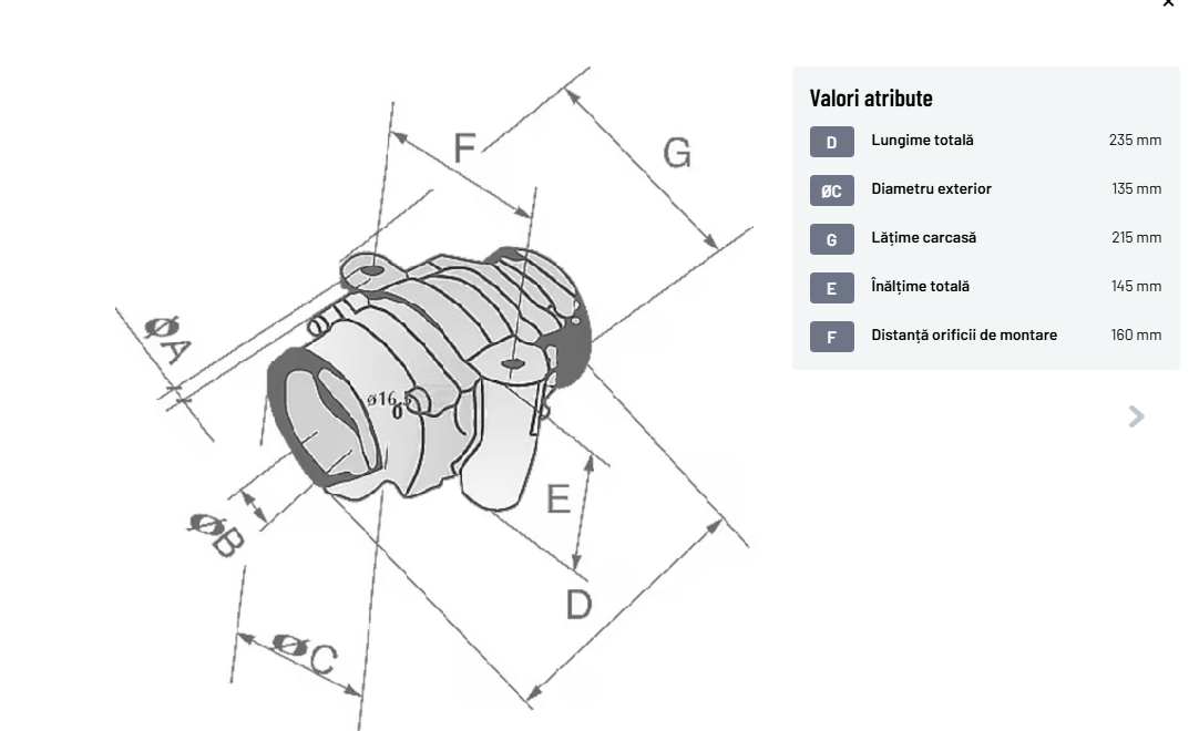 | ØCDiametru exterior | 135 mm | |