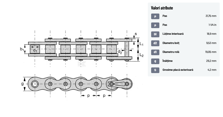 | d1Diametru rolă | 19,05 mm | |