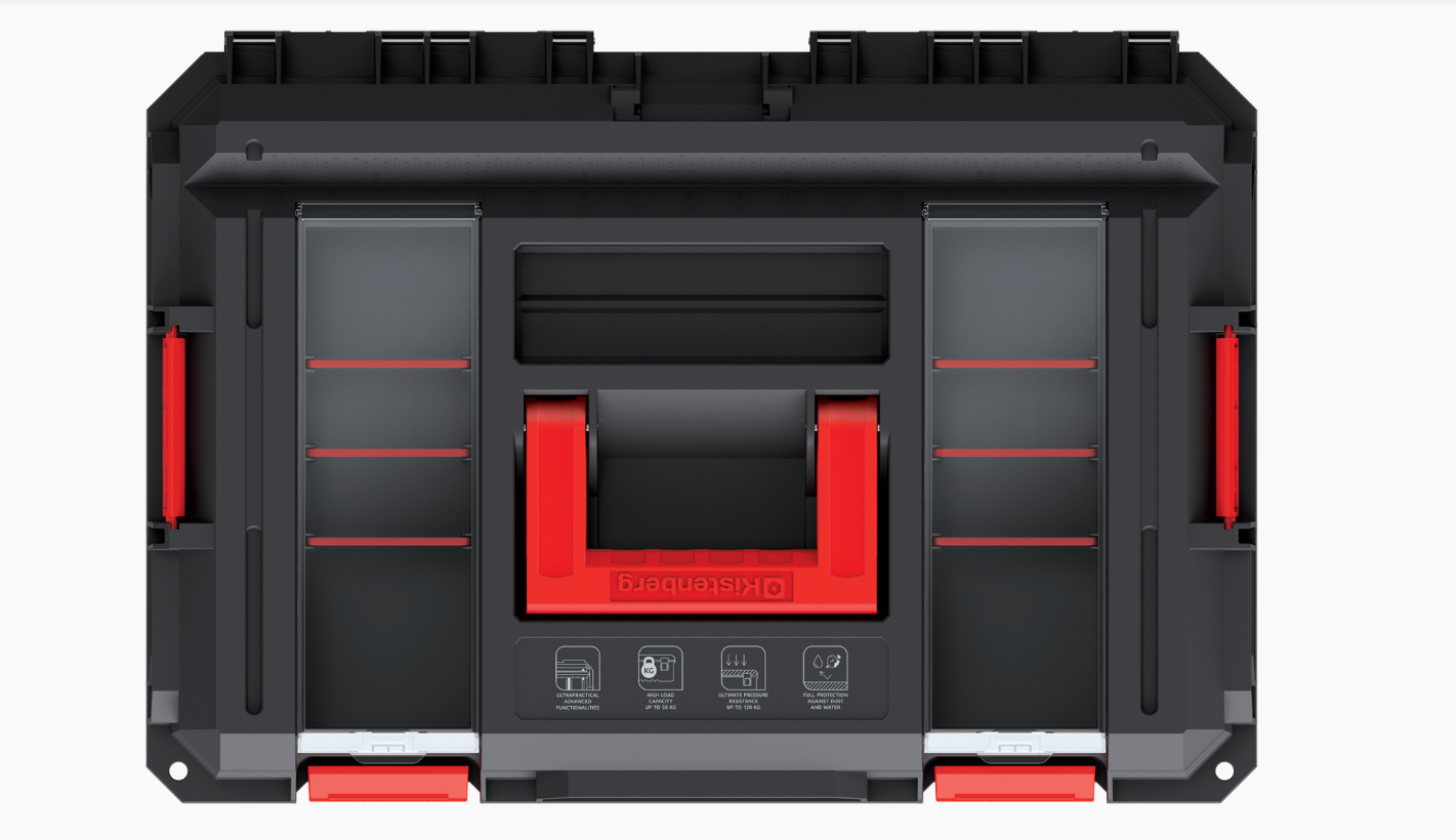 Cutie de scule,tip modular,din plastic,culoare negru/rosu,dimensiuni:lungime 546mm,latime 380mm,inaltime 307mm