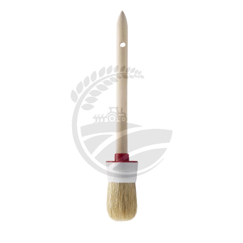 Perie deschisa la culoare, vârfuri de aproximativ 60%, mâner din lemn natural cu orificiu de agățare, banda din plastic.